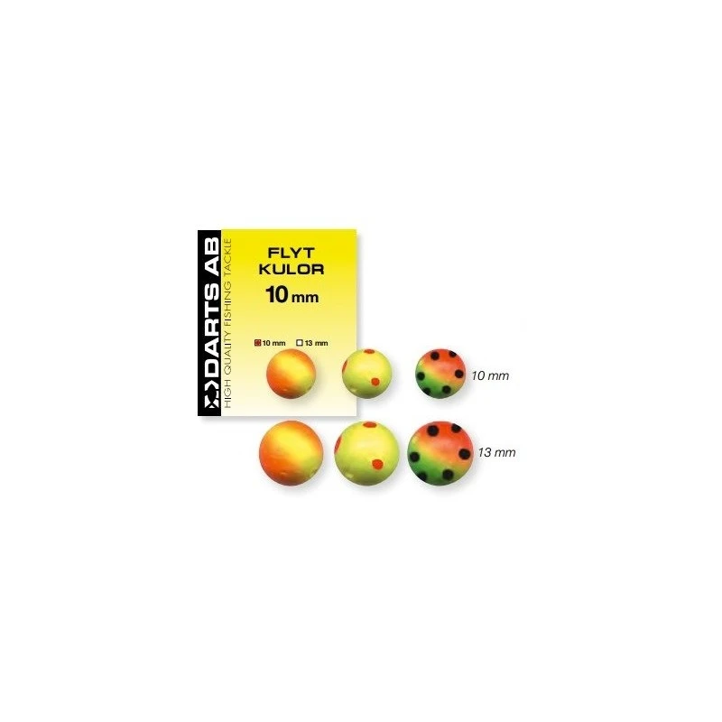 Darts Flytkulor 13 mm är riktigt bra att ha vid många olika tillfällen. Att få betet att sväva en bit ovanför botten brukar kunna vara riktigt effektivt! Flytkulor är alltid bra att ha i fiskelådan.