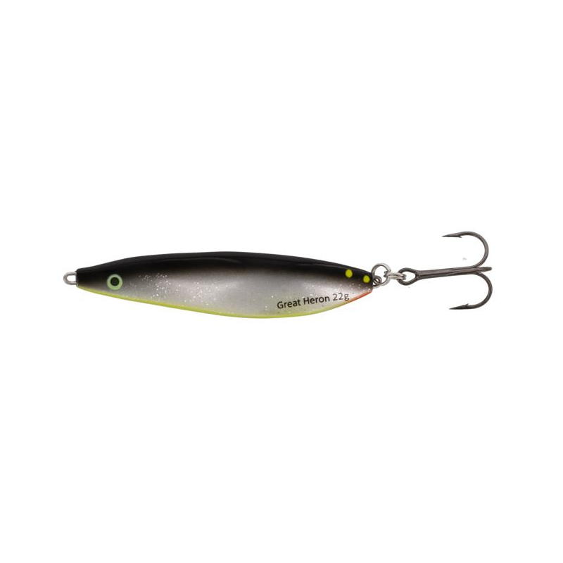 Westin Great Heron väger 18 gr och är 63 mm lång. Det har en böjd kropp, som ger den en oemotståndlig gång i vattnet. Perfekt för kustfiske efter öring. Den har en blyfri konstruktion och har dubbla fjäderringar, vilket innebär att fisken får svårare att slå sig lös när du har krokat den. Great Heron har en trekrok (VMC 9649 BN) i storlek 5.