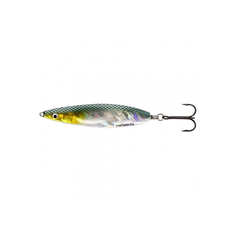 Westin Great Heron väger 18 gr och är 65 mm lång. Det har en böjd kropp, som ger den en oemotståndlig gång i vattnet. Perfekt för kustfiske efter öring. Den har en blyfri konstruktion och har dubbla fjäderringar, vilket innebär att fisken får svårare att slå sig lös när du har krokat den. Great Heron har en trekrok (VMC 9649 BN) i storlek 5.